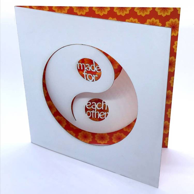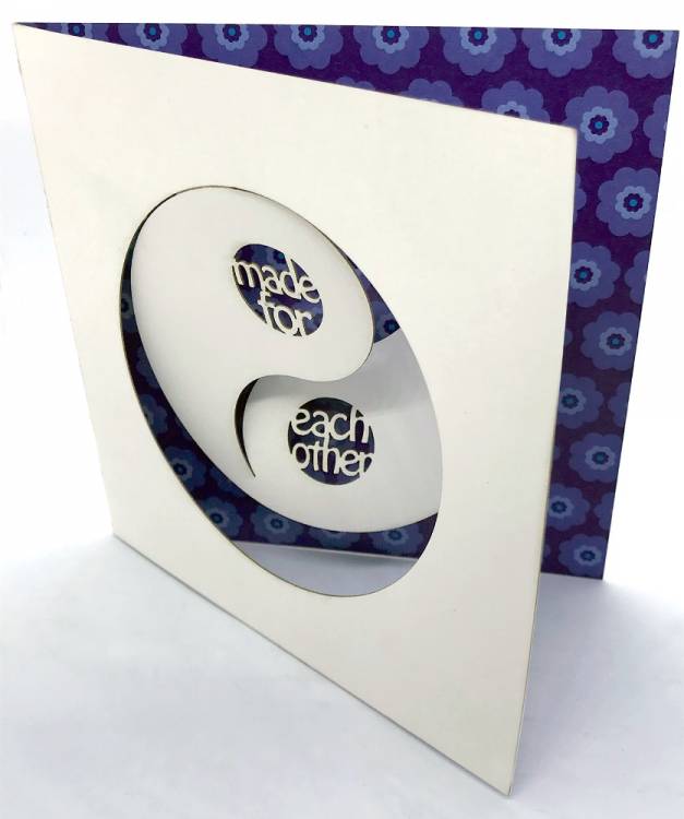 125mm (5") square white card with a Yin Yang cut design showing flower pattern printed inside - choose from 7 different patterns